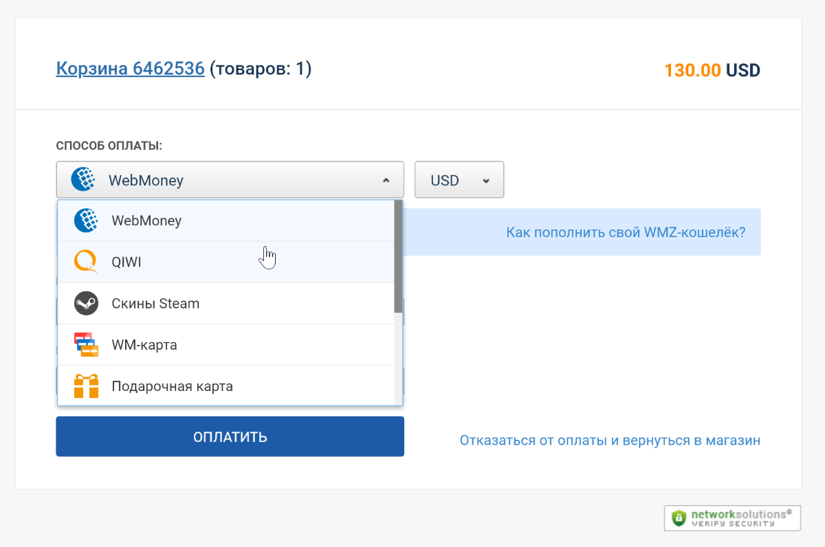 Оплатить покупку можно с помощью WebMoney, Qiwi, криптой и более экзотическими способами, типа скинов в Steam.