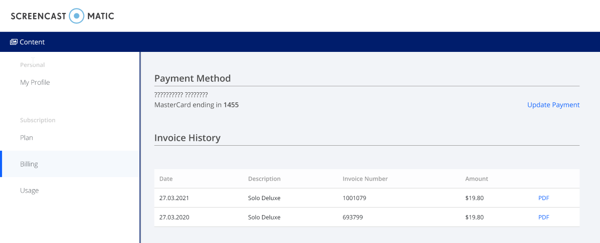 Для оплаты я выбрал подписку на сервис Screencast-O-Matic, потому что у него как раз подошёл срок оплаты. А стоимость подписки составляет $20, что для проверки оплаты через Plati.Market было не так рискованно с точки зрения финансов.