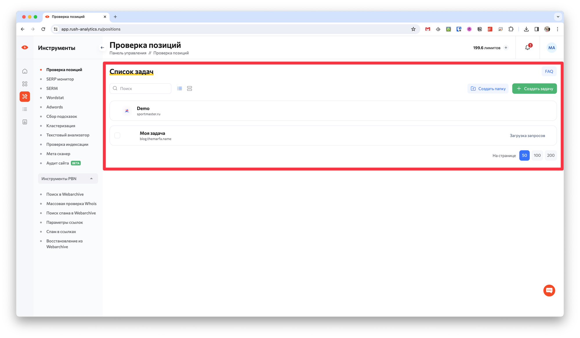 Теперь остаётся только нажать кнопку Запустить задачу и подтвердить её выполнение. После чего в Списке задач вы сможете просматривать все созданные задачи и их текущий статус. Отсюда же можно перейти к просмотру результатов.