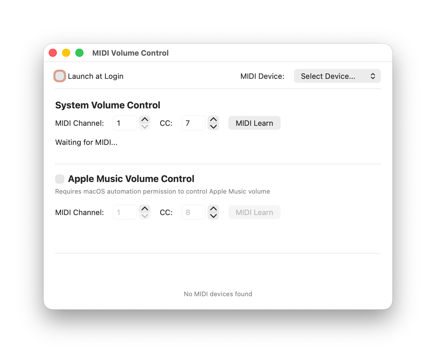 По факту ничего из этого делать не нужно, т.к. MIDI Volume Control автоматически определяет все необходимые настройки. И при нажатии на иконку в Строке меню вы сможете изменять отдельно уровень громкости системы и Apple Music.