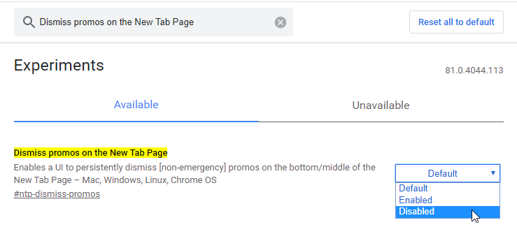 Откройте страницу chrome://flags и введите в поле поиска "Dismiss promos on the New Tab Page". Выставите параметр на Disabled и перезапустите браузер.
