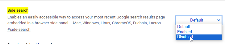 Если вам такое поведение не нравится, простой отключите флаг chrome://flags/#side-search