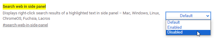И повторите процедуру для флага chrome://flags/#search-web-in-side-panel