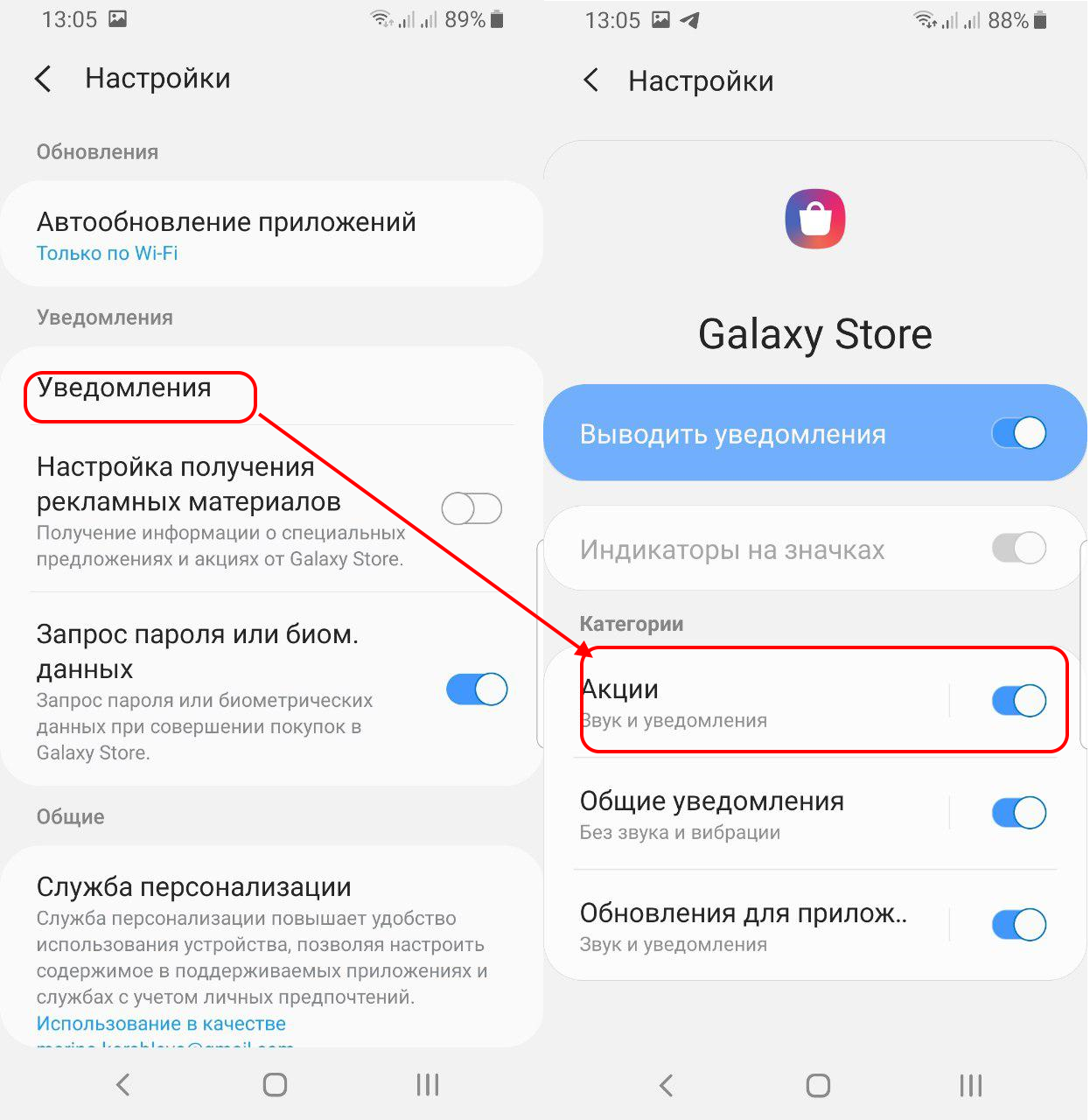 - В разделе Уведомления выключите «Настройка получения рекламных материалов»;