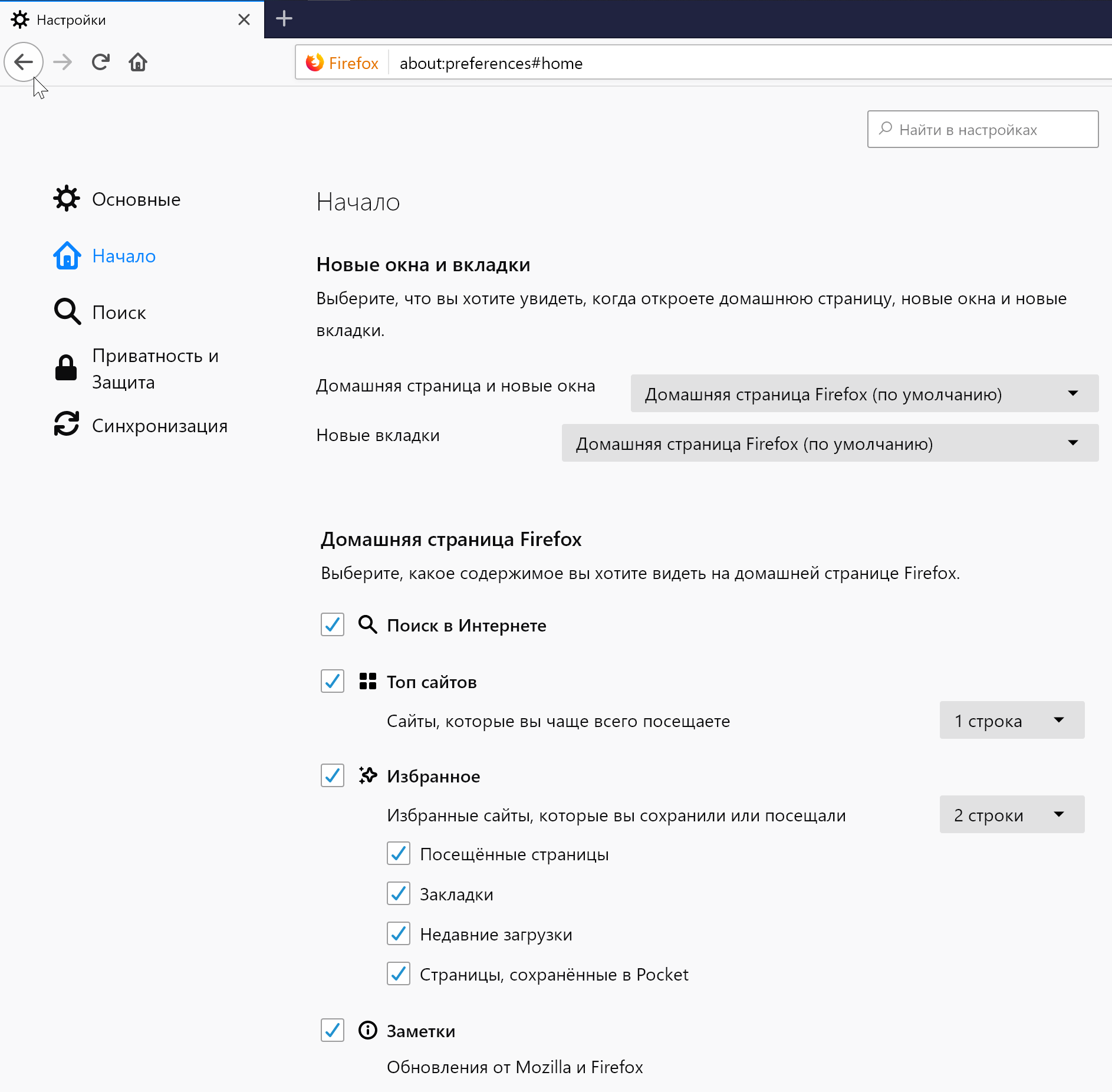 about:preferences#homeили просто перейдите в настройки браузера - Перейдите в раздел Начало и в самом низу найдите пункт Заметки