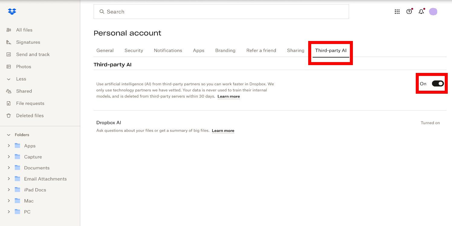 Dropbox уже давно стало синонимом облачного сервиса для обмена и хранения файлами. Но тренд на искусственный интеллект не обошёл стороной и этот сервис. Благодаря чему Dropbox делится частью ваших данных с OpenAI. Конечно, если вы не отключили это в настройках.