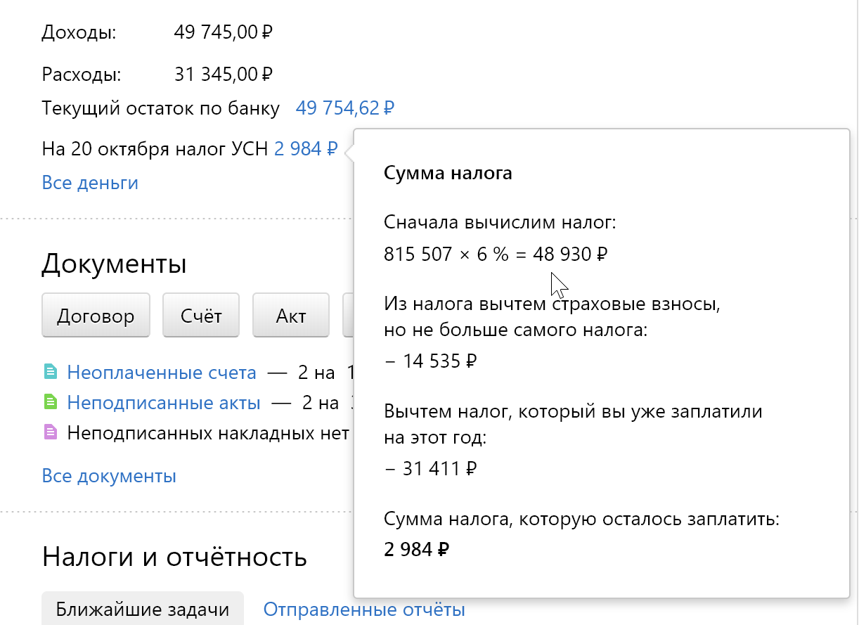Я оплачиваю налоги при помощи "Контур.Эльба". Сервис автоматически рассчитывает сумму налогов и периоды их оплаты. Не забывает вовремя напомнить, помогая правильно всё оплатить.
