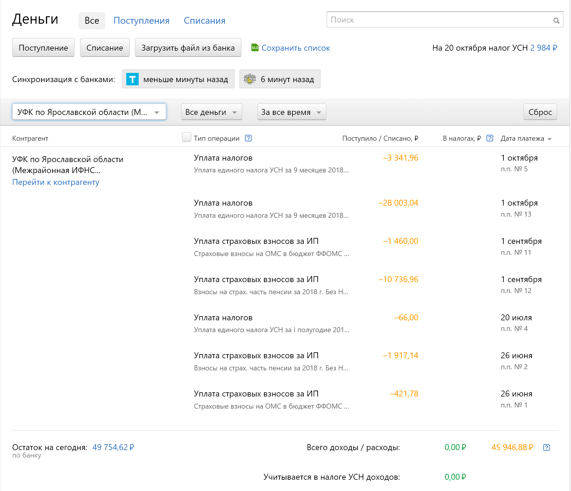 Из своего опыта скажу, что если вы не хотите думать о бухгалтерии, лучше воспользоваться сторонним сервисом. Банковские сервисы всё-таки иногда путают, и приходится общаться с техподдержкой. А если у вас несколько счетов, то сторонний сервис автоматически будет считать все движения по ним.
