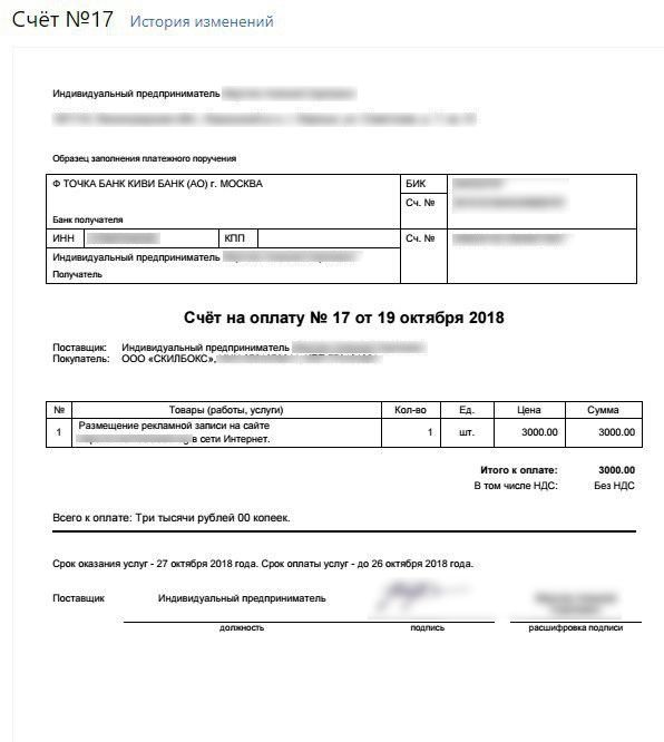 По минимуму здесь достаточно выставить счёт на оплату. Чтобы в будущем не возникли проблемы, в счёте обязательно нужно указывать: