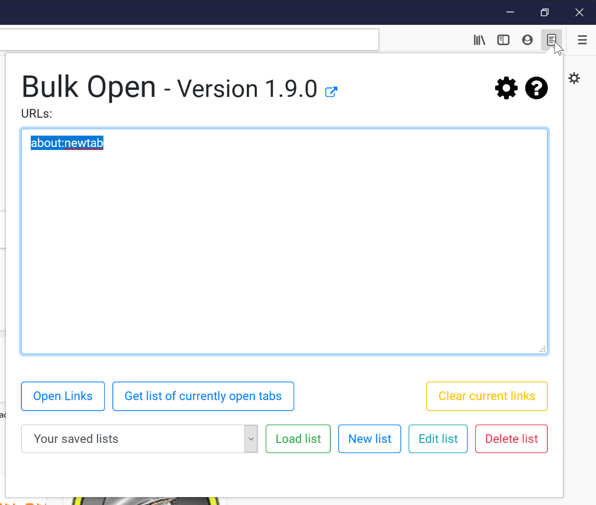 Если вы хотите сохранить список ссылок для использования в будущем, то в расширении можно создавать и загружать списки. Такие списки доступны в выпадающем меню Bulk URL Opener.