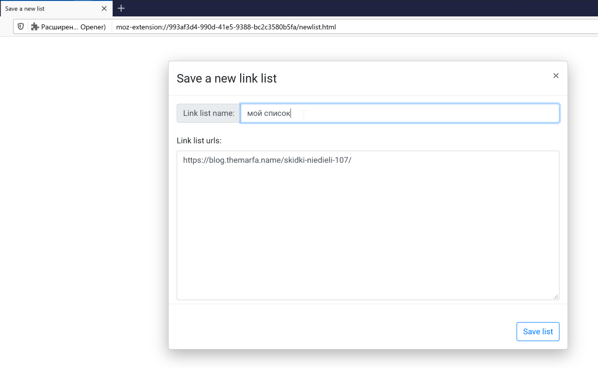Когда у вас есть список из более, чем пяти ссылок, открывать каждую по отдельности так себе удовольствие. Я тоже так решил и поэтому установил расширение в браузер.