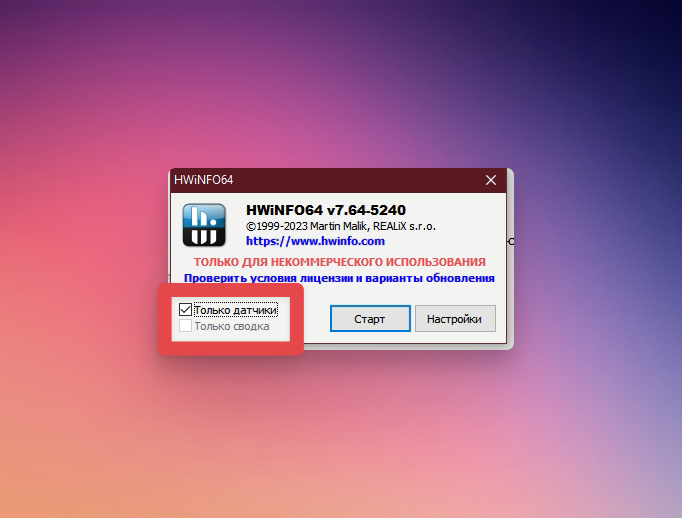 Запустите утилиту, активируйте чекбокс Только датчики и нажмите кнопку Старт.