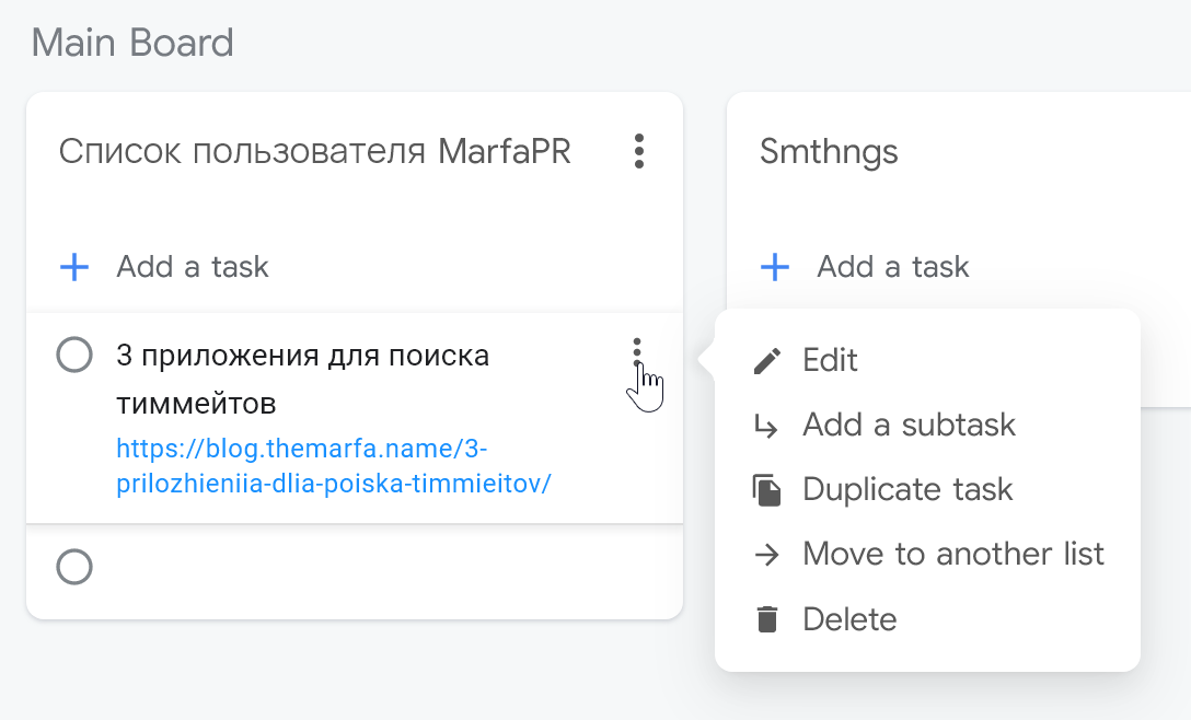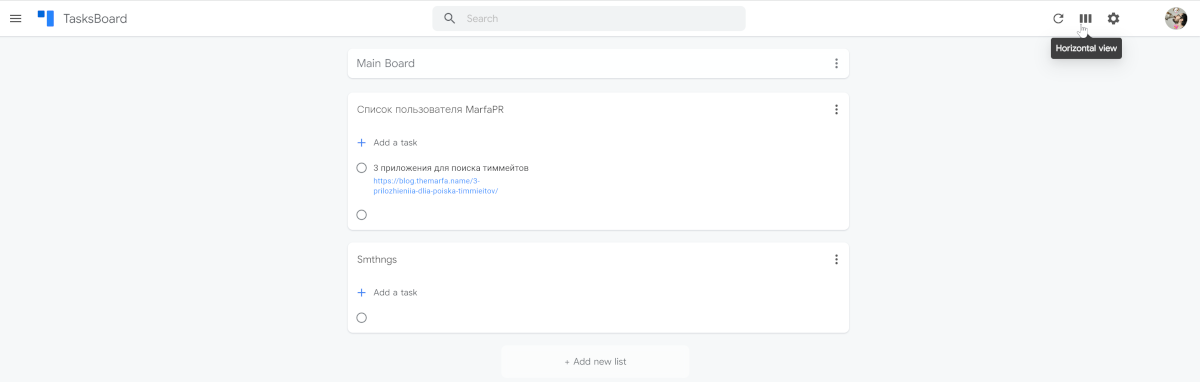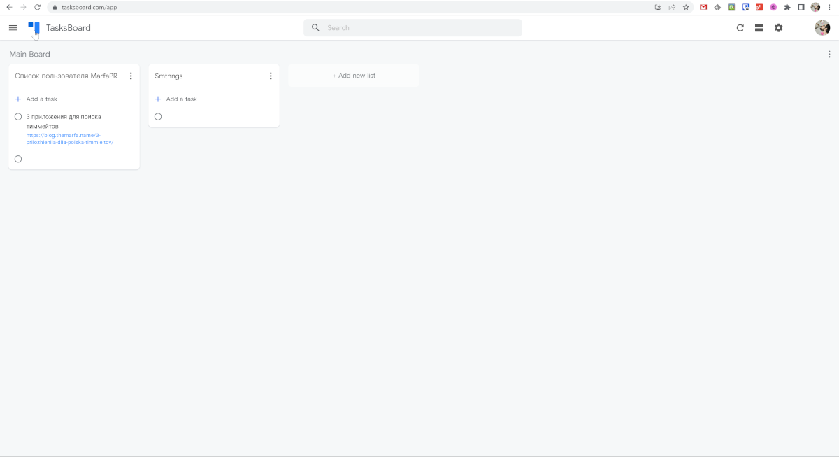 Сам TasksBoard – это привычная Kanban тудушница со всеми её плюсами и минусами. Правда в очень урезанном варианте.