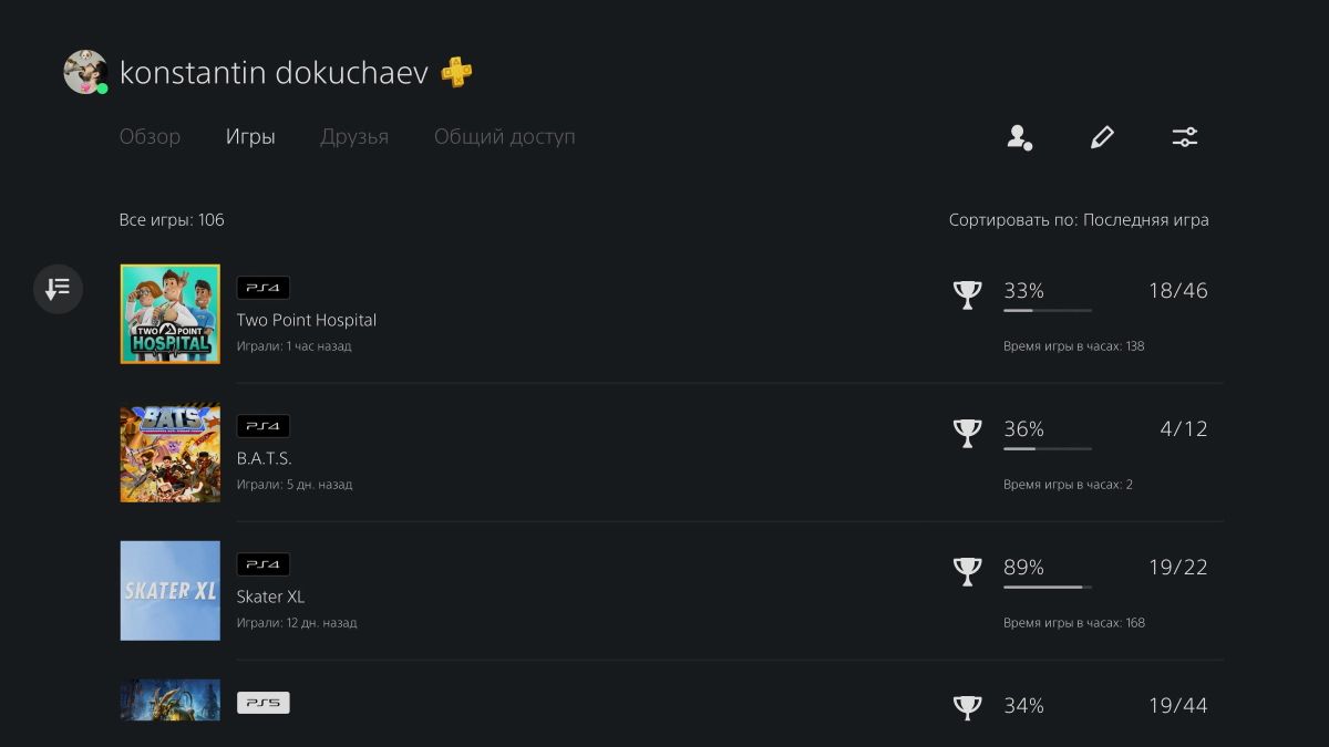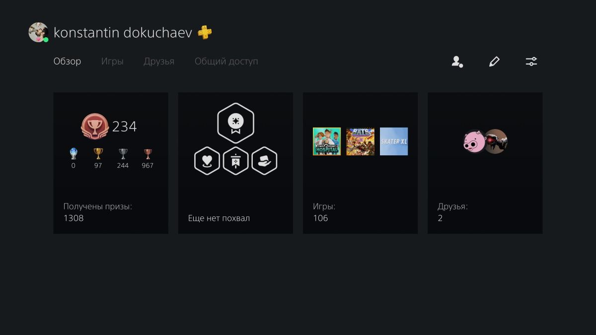 Первый и самый очевидный способ узнать свою игровую статистику — воспользоваться данными самой приставки. Для этого на приставке перейдите в свой профиль и выберите раздел Игры.