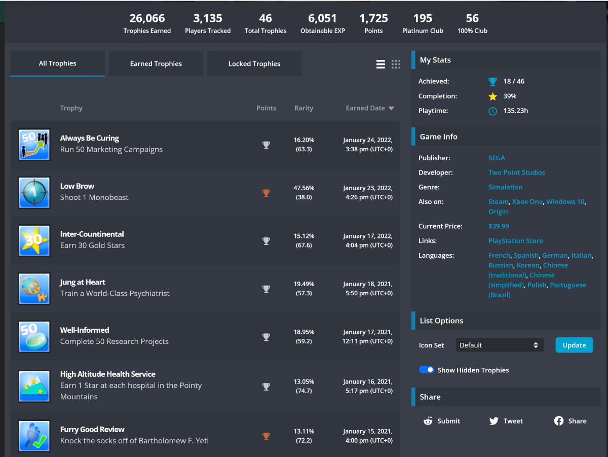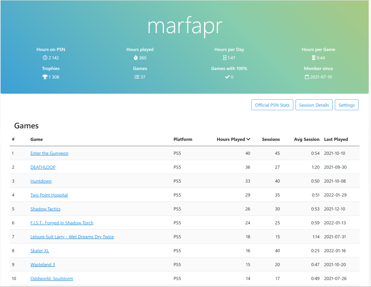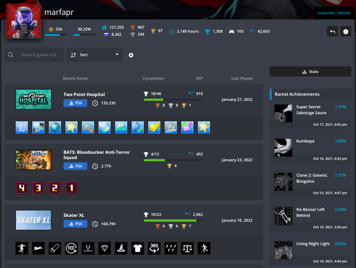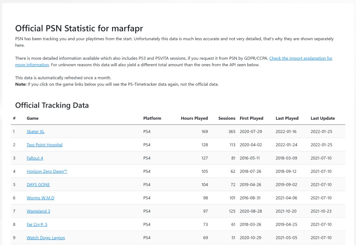 Это что-то среднее между двумя вариантами выше. После регистрации на сайте в настройках профиля нужно добавить свой аккаунт в PSN и произвести синхронизацию данных. Через какое-то время сервис подтянет официальную статистику PlayStation.