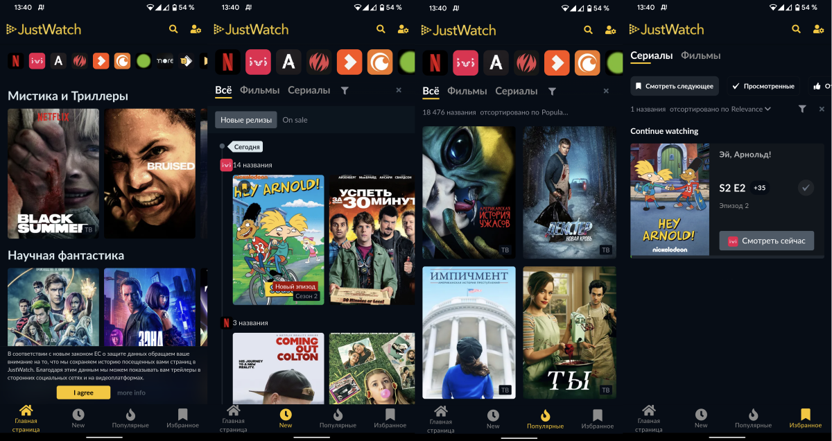 Сервис JustWatch доступен не только через браузер, но и через мобильные приложения. Также его можно подключить к Smart TV. По возможностям версии приложений ничем не отличаются друг от друга. А вся информация синхронизируется между ними.