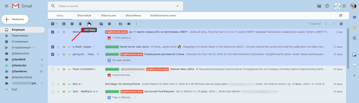 Batch Reply for GMail поможет массово ответить на письма в Gmail.