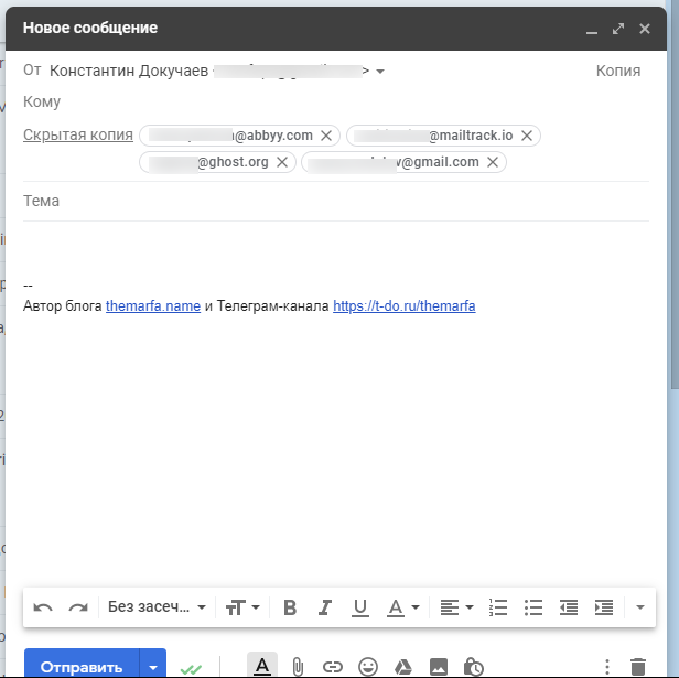 При нажатии на неё откроется окно создания нового письма, где все адресаты будут в скрытой копии.