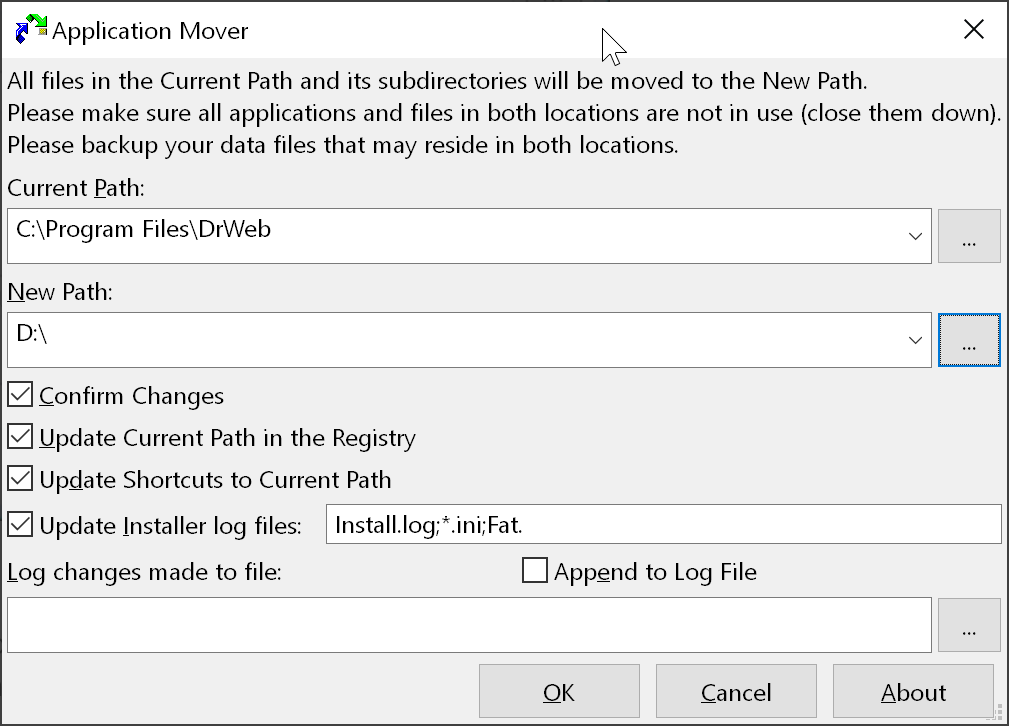 Application Mover поможет переместить файлы установленного приложения в другую папку. Также исправляются пути в реестре, файлах настроек и прочих важных местах.