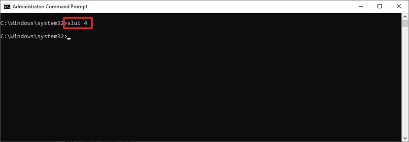 В окне программы нужно будет ввести команду slui 4, служащую для активации копии «десятки», и нажать Enter.