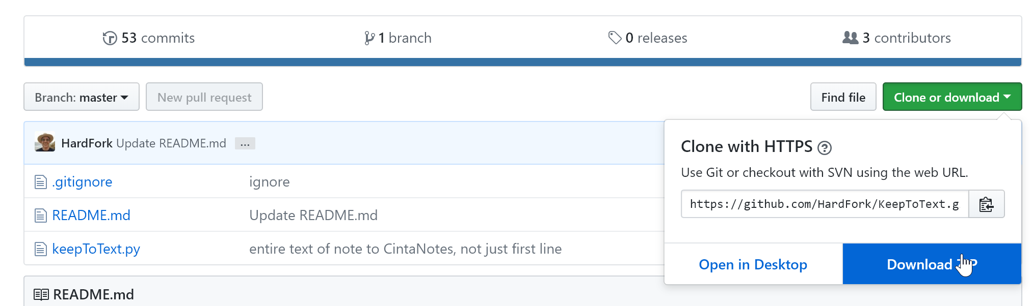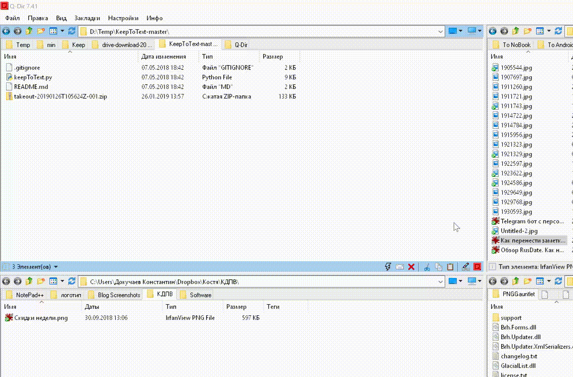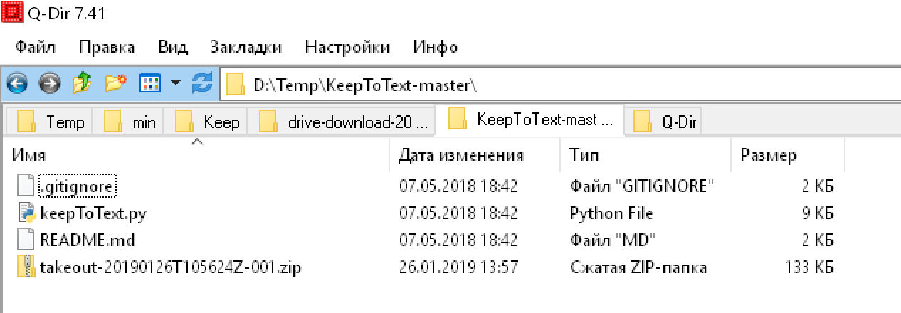 Затем скачайте заметки Google Keep, как описано в первом способе. Полученный архив поместите в папку KeepToText-master. Должно получится так: