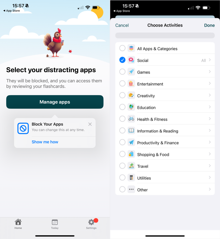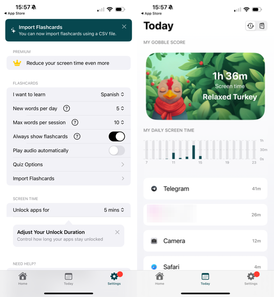 Gobble: Go Cold Turkey on Apps — приложение для iOS, которое помогает изучать новые языки с помощью флеш-карточек, а заодно избавить вас от привычки листать бесконечные ленты социальных сетей.