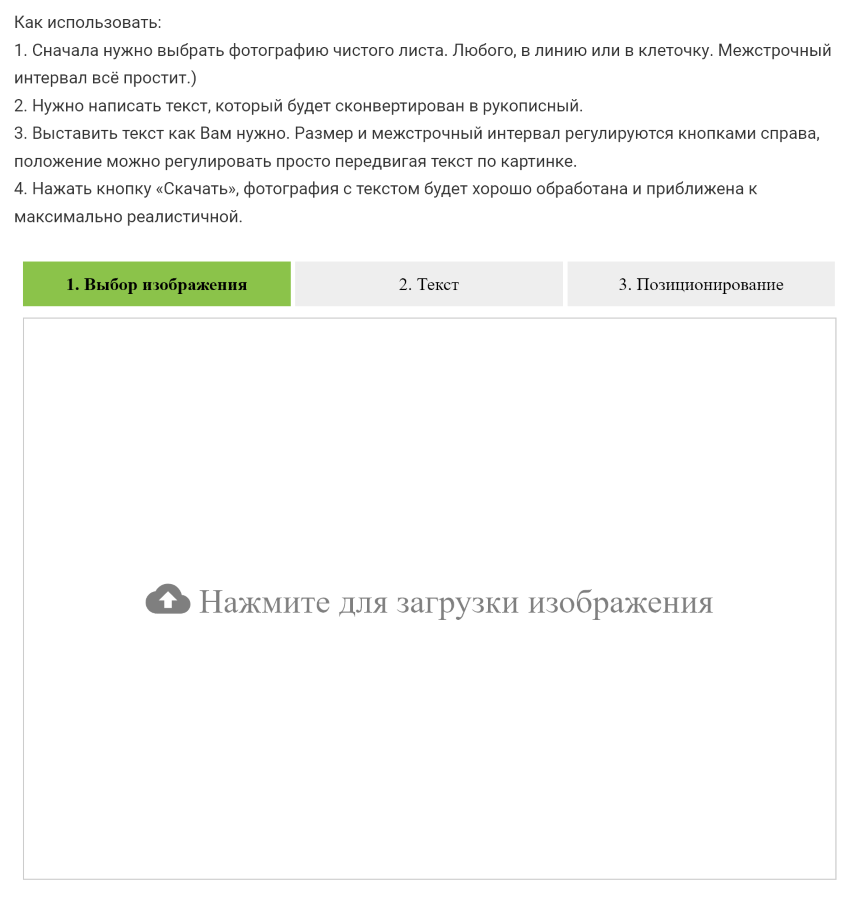 В случае с этим сервисом придётся немного заняться ручным трудом. А именно: самому загрузить фон, добавить текст, изменить его позиционирование. И в итоге вы получите изображение с рукописным текстом.