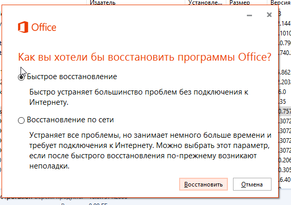 Если не помогло, попробуйте восстановить Microsoft Office через меню «Изменить» в «Программах и компонентах».