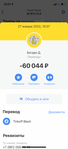 - Чек, историю или перевод из Сбербанка или Тинькофф;