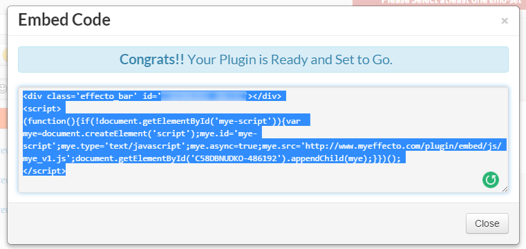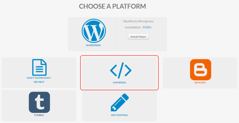 После регистрации на MyEffecto в разделе Configure-Pligin нужно выбрать Universal code