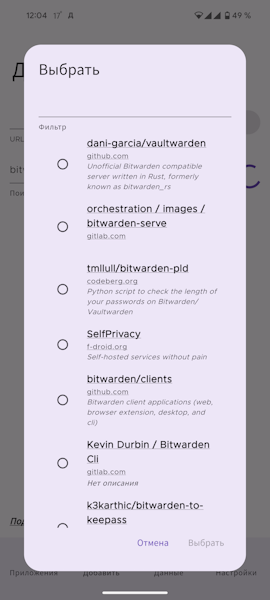Я рекомендую по возможности пользоваться именно первым вариантом, как наиболее простым. Иначе на этапе поиска, даже при указании одного репозитория, может быть несколько совпадений. И, несмотря на фильтр, самостоятельно угадать правильный вариант будет сложно. С Bitwarden, например, у меня не получилось это сделать.