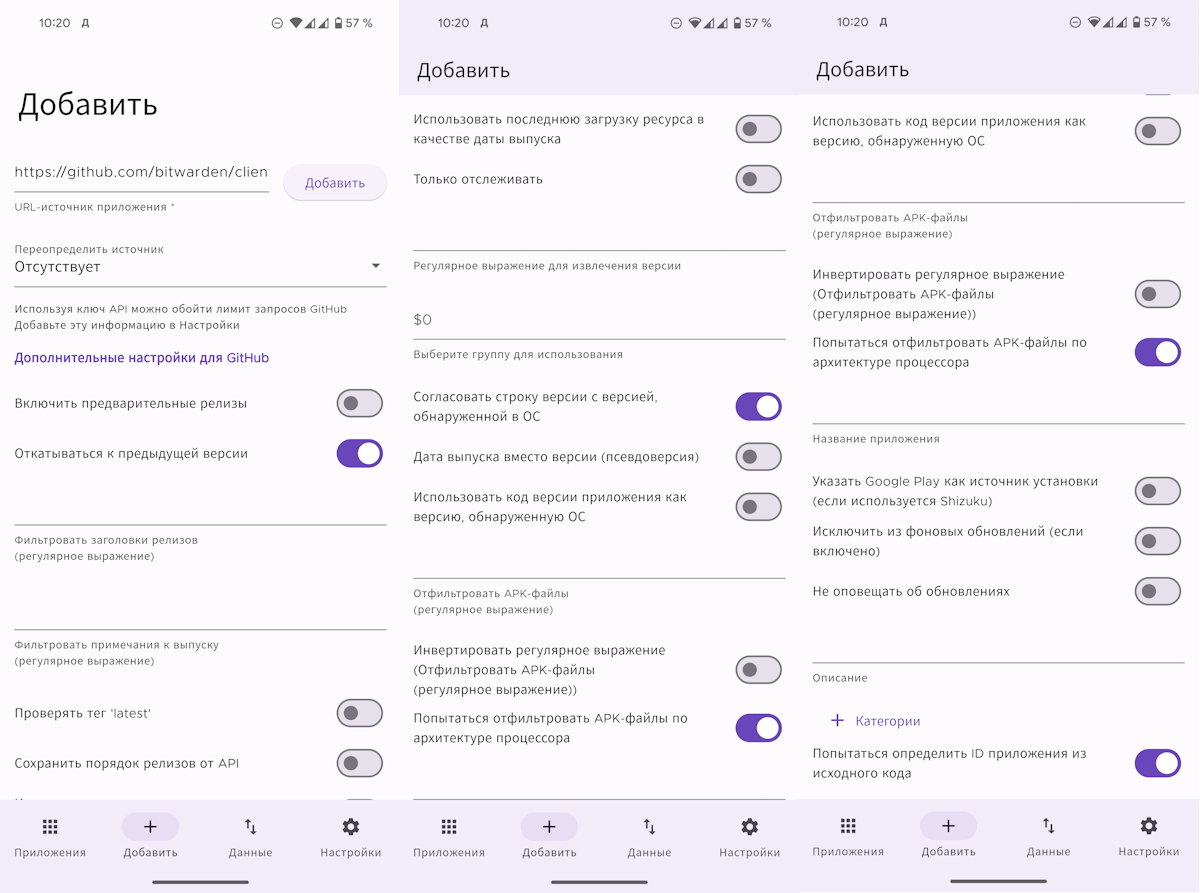 Например, в управлении источником можно активировать установку бета-версий, получение только оповещений о выходе версий, фильтр APK-файлов и многое-многое другое.