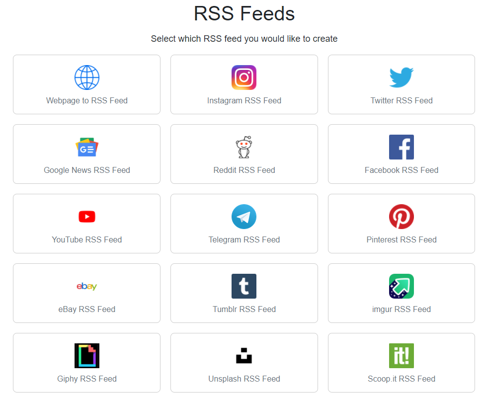 Если подходящего ресурса нет, нажимайте Webpage to RSS Feed. В зависимости от выбранного варианта, шаги на следующем этапе могут немного различаться.