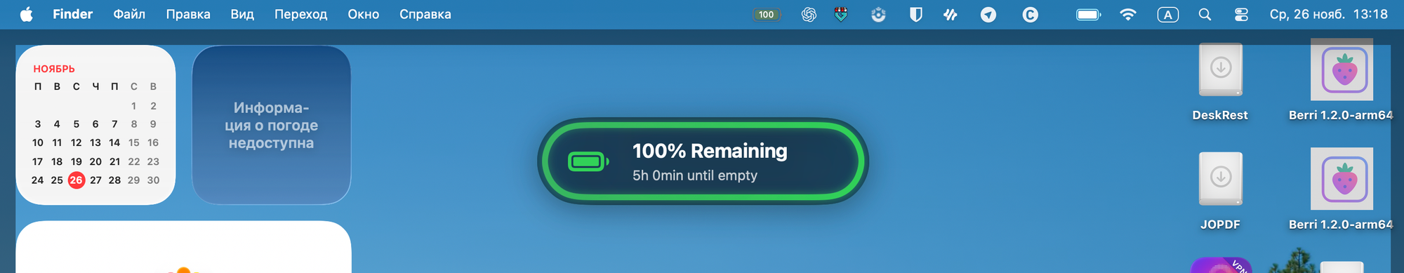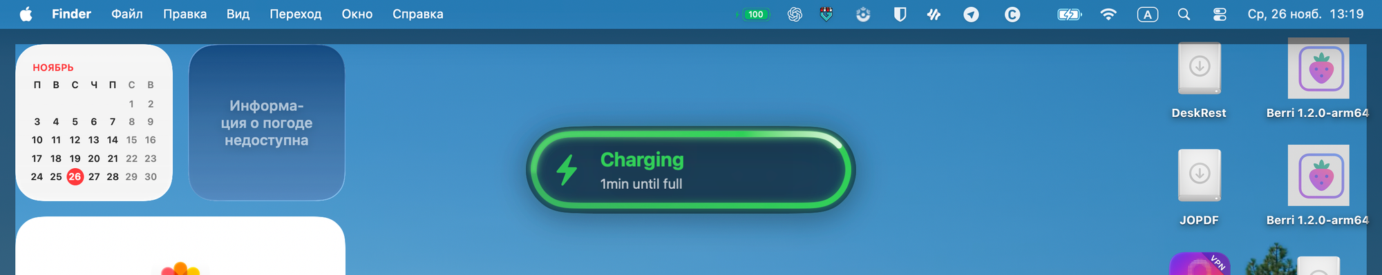 Иногда бывают ситуации, что MacBook перестал заряжаться. Битый провод, или вы его случайно задели, и зарядка прервалась без вашего ведома. Было бы круто получать оповещения в таком случае.