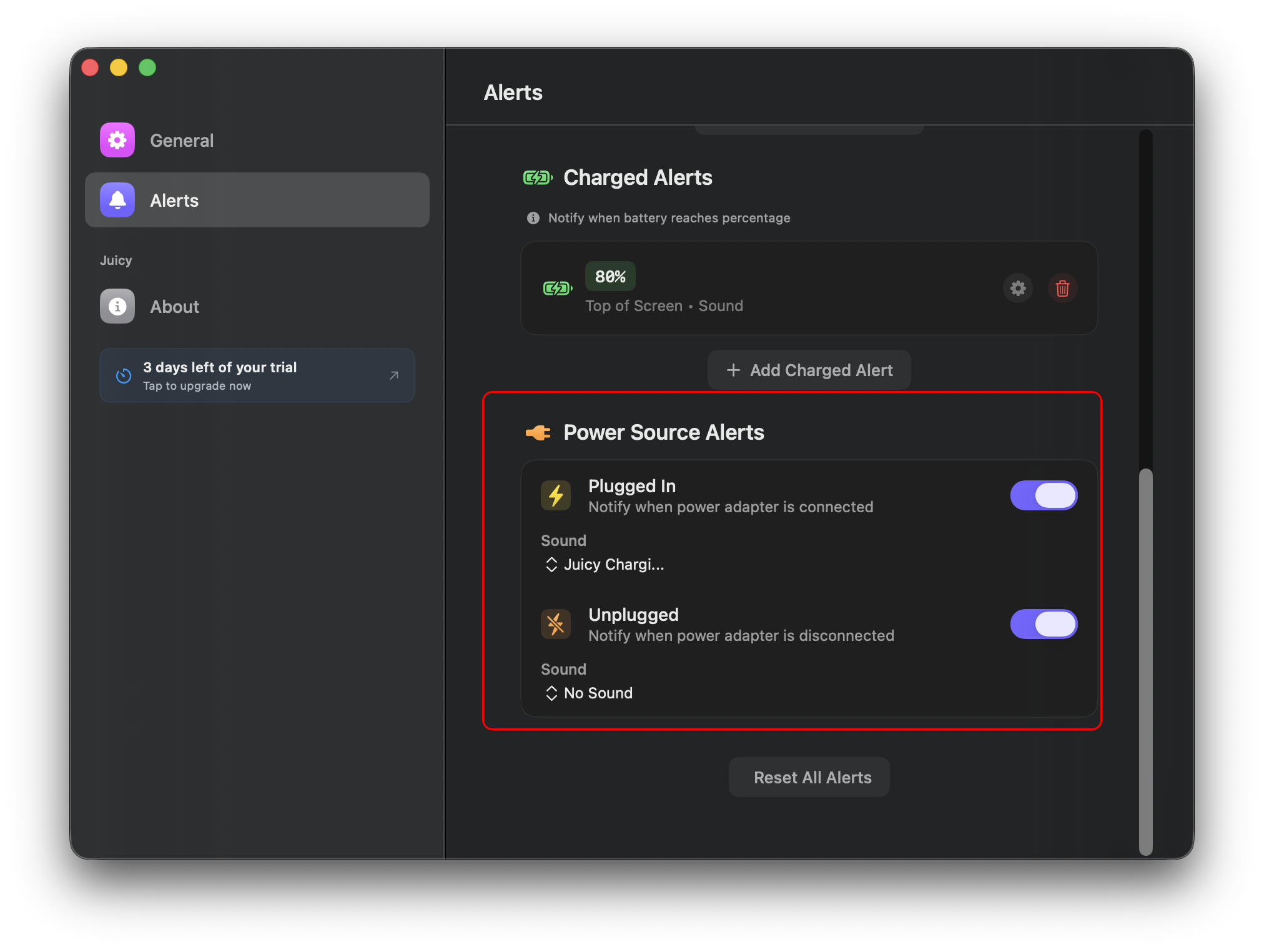 Решить эту проблему можно с помощью приложения Juicy. Вообще, оно служит для получения настраиваемых оповещений об уровне заряда батареи, но в настройках есть отдельный пункт, который нам и нужен.