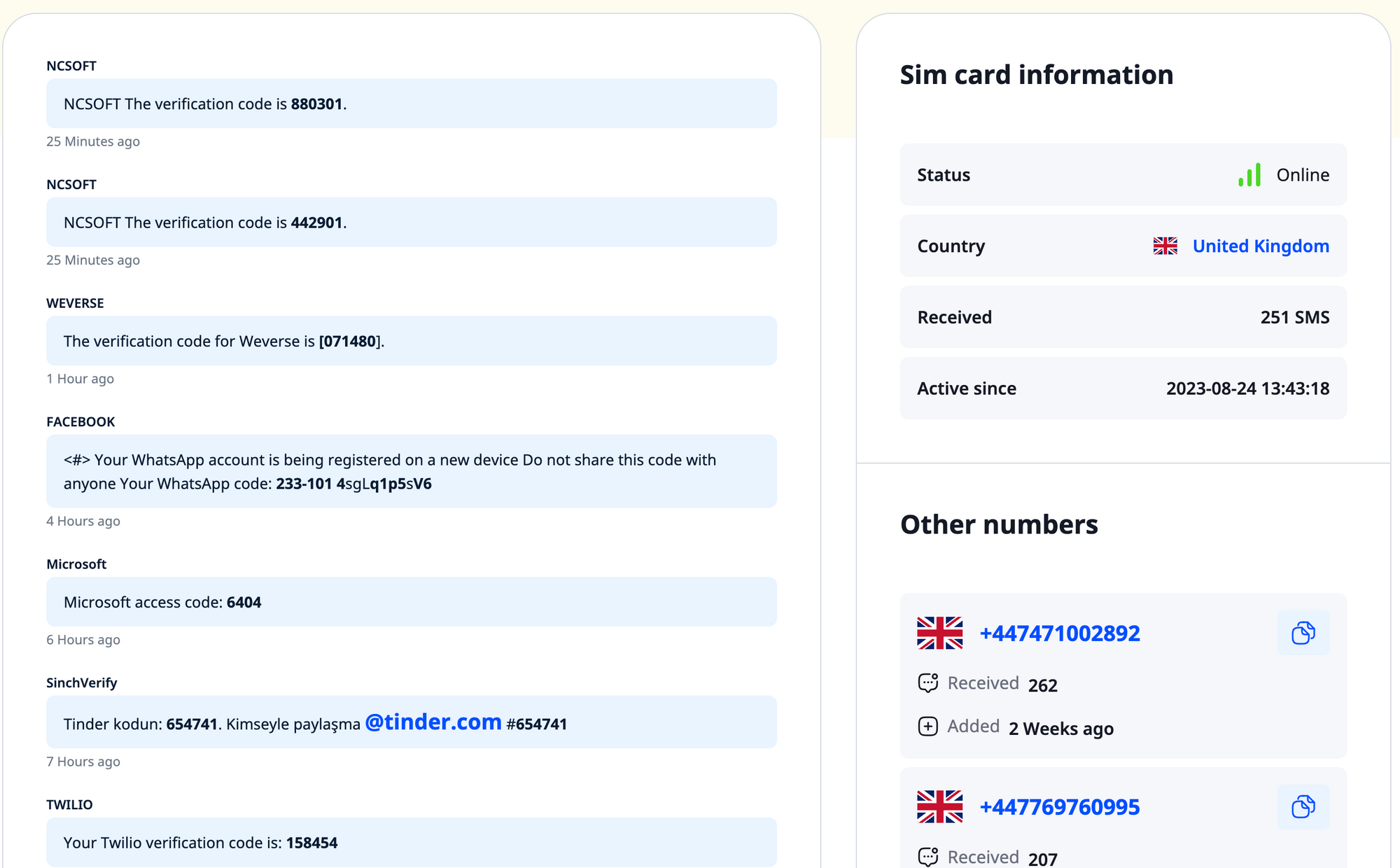 В этом случае можно воспользоваться сайтом Temporary Phone Number, который предоставляет публичные номера телефонов с кодами США, Англии, Ирландии и Словении.