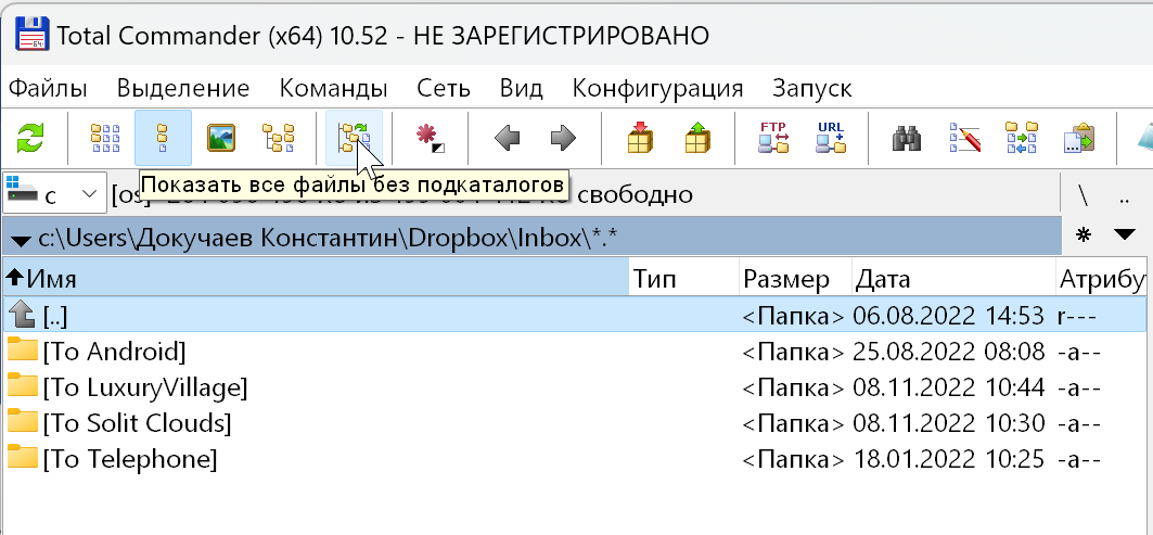 Для её активации нужно просто открыть изначальную папку и на панели инструментов нажать соответствующую кнопку или воспользоваться горчей клавишей CTRL+B.