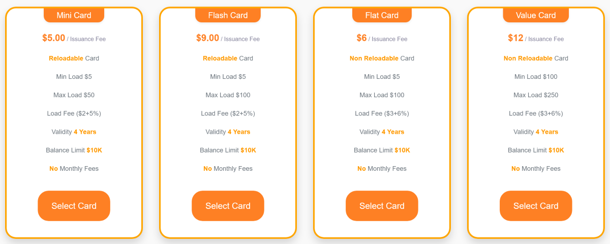 На момент написания этой статьи доступны только пополняемые карты Mastercard и Visa стоимостью $32 и €40, соответственно. Все одноразовые карты недоступны для заказа.