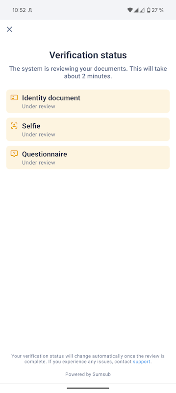Далее понадобится подтвердить email, и в самом конце пройти KYC. Весь процесс занимает буквально две минуты. Фоткаете загранник, делаете селфи, указываете ваш адрес проживания.