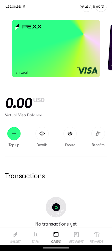 PEXX — мобильное приложение, которое позволяет выпускать виртуальные карты с пополнением криптой.