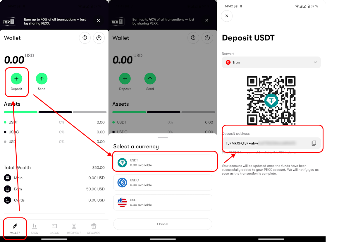 То есть если вы хотите пополнить карту через USDT, то и на балансе у вас должны быть USDT. Но если что, на вкладке Wallet всегда можно конвертировать валюты.