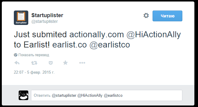 За Startuplister лучше всего следить в их Twitter-аккаунте. На их сайте для конечных пользователей информации мало. А вот в Twitter они сообщают о новый стартапах: