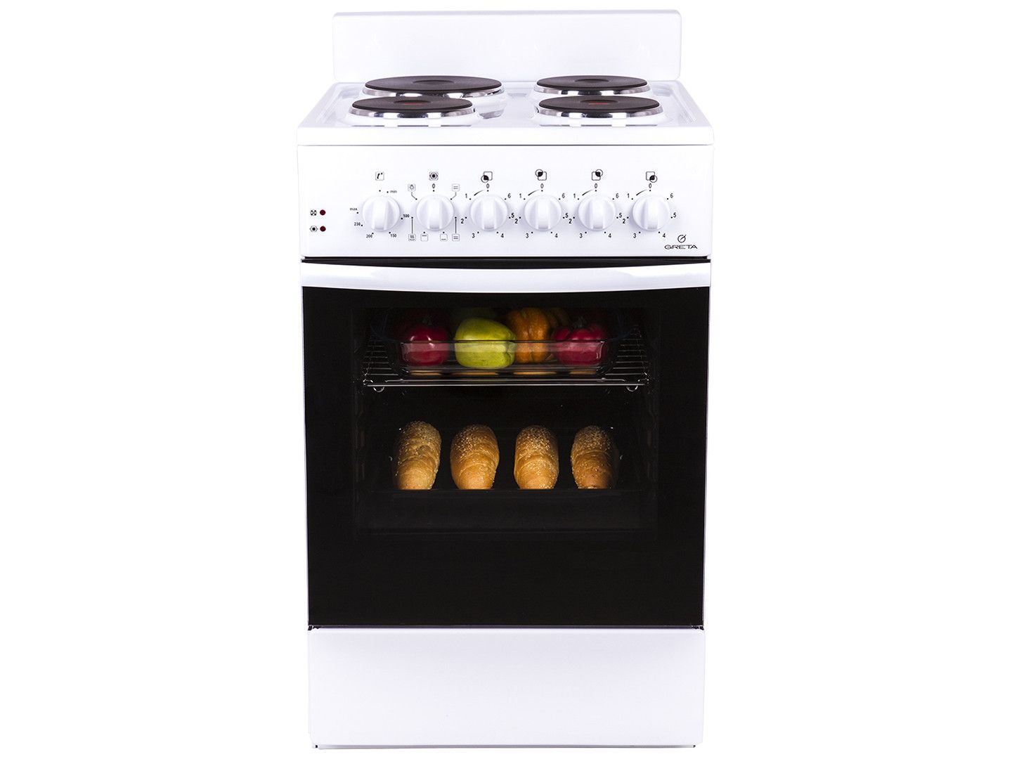 Greta отличается особенно удачным сочетанием функций приготовления и качества сборки по доступной цене. Она имеет гладкую варочную панель с множеством элементов питания, которые вы можете найти в гораздо более дорогих плитах, а также духовку значительного объёма, которая не уступает большинству конкурентов. Функции управления и таймера в моделях Greta — механические.