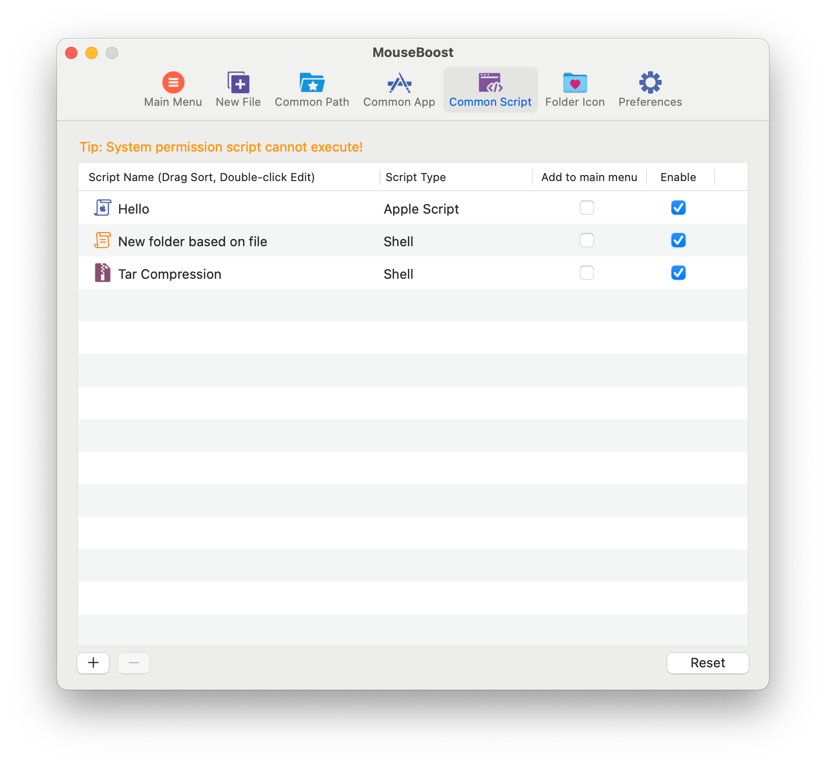 После предварительной настройки нужно будет активировать отображение нового контекстного меню. Сделать это несложно, но потребуется вставить команду в Терминал и выполнить её. Саму команду MouseBoost подскажет.