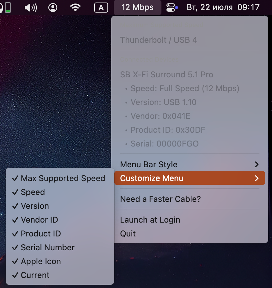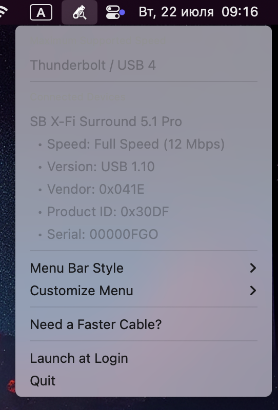 Если вам часто нужно мониторить скорость работы и прочие параметры подключённых USB-устройств, то делать это не очень удобно. К счастью, есть варианты, при которых всю необходимую информацию можно вывести прямо в Строку меню.