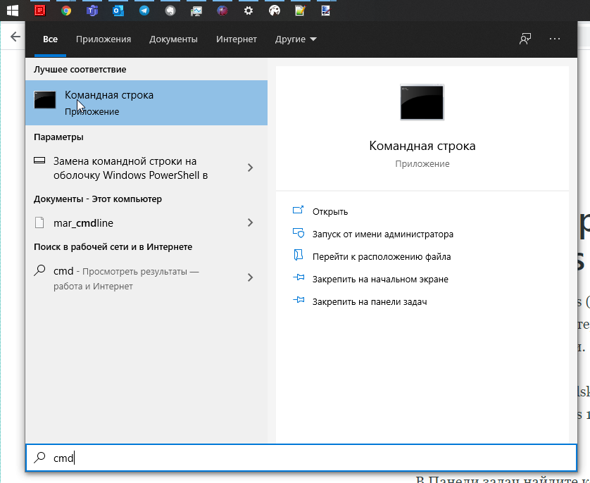 В Панели задач найдите команду Выполнить. Для этого в поиске укажите "cmd" и запустите приложение от имени администратора.