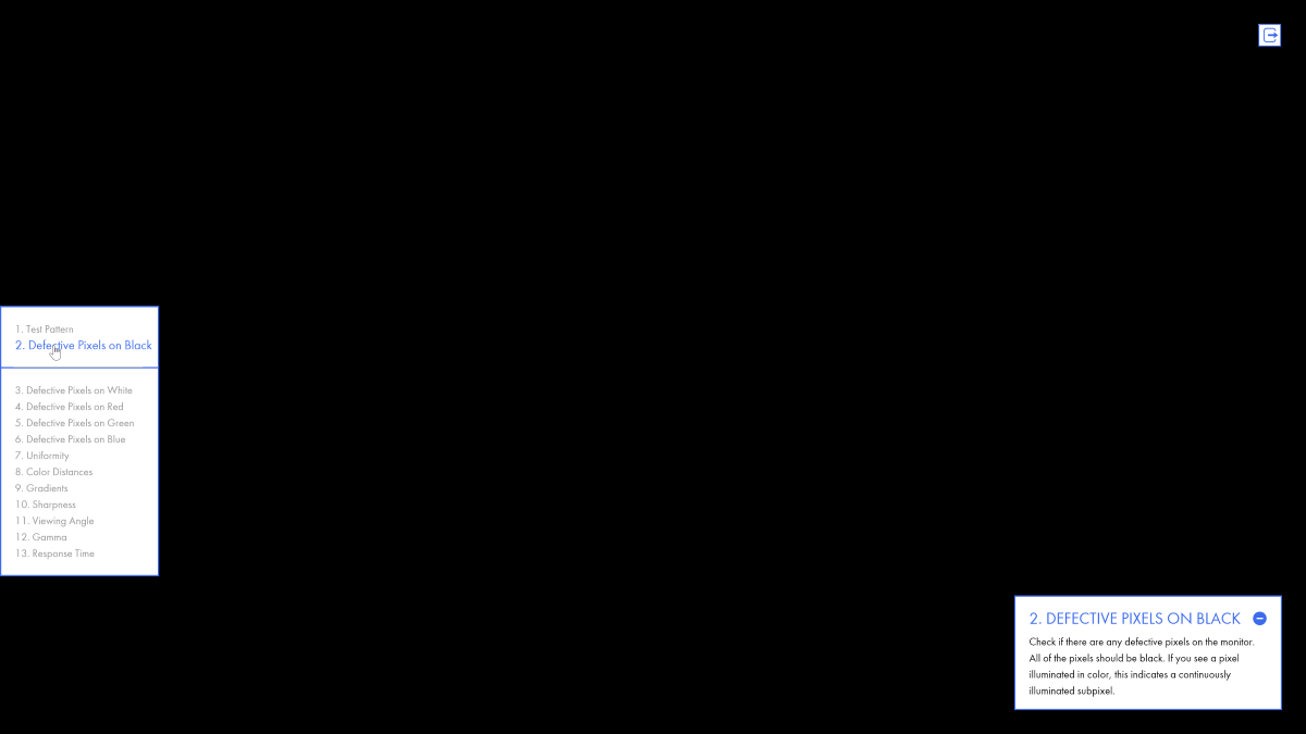 С её помощью можно выявить около девяти различных проблем от единообразия и цветового различия, до углов обзора и времени ответа. При нажатии на Test по очереди откроется каждый из тестов и вы сможете понять, есть ли проблема с пикселями.