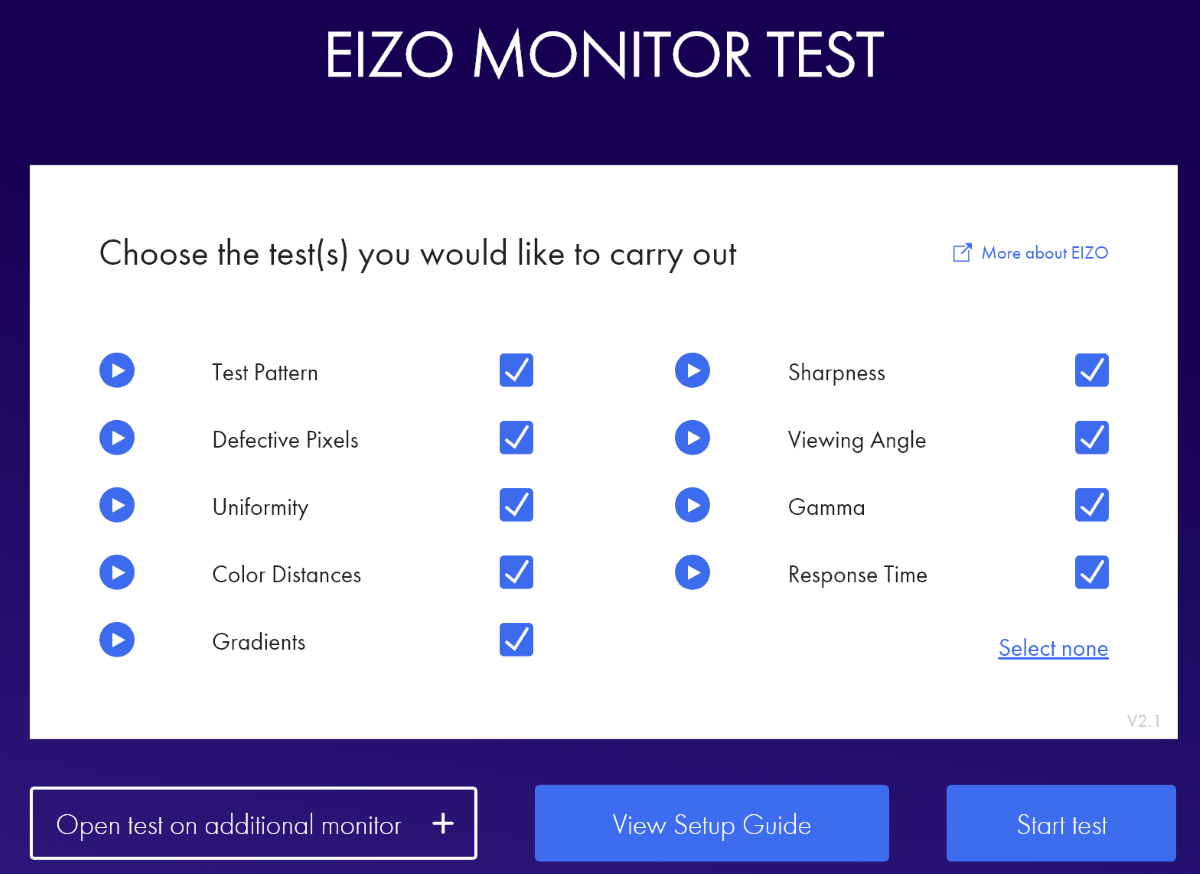 EIZO monitor test – комплексная онлайн утилита для поиска проблем в работе монитора. Разработчик – одноимённая компания производитель мониторов.