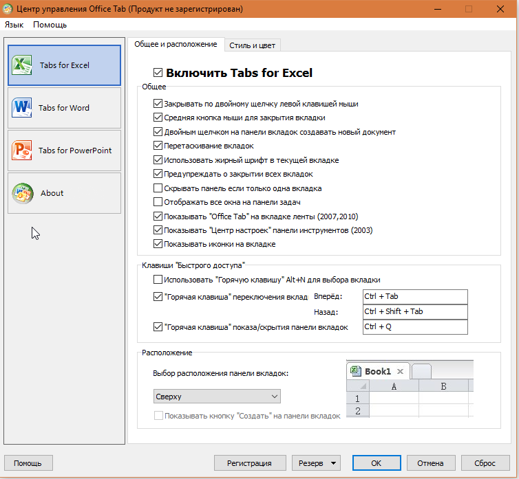 Если для какой-то программы вы хотите отключить эту функцию, то нужно просто зайти в настойки Office Tab и поменять параметры.