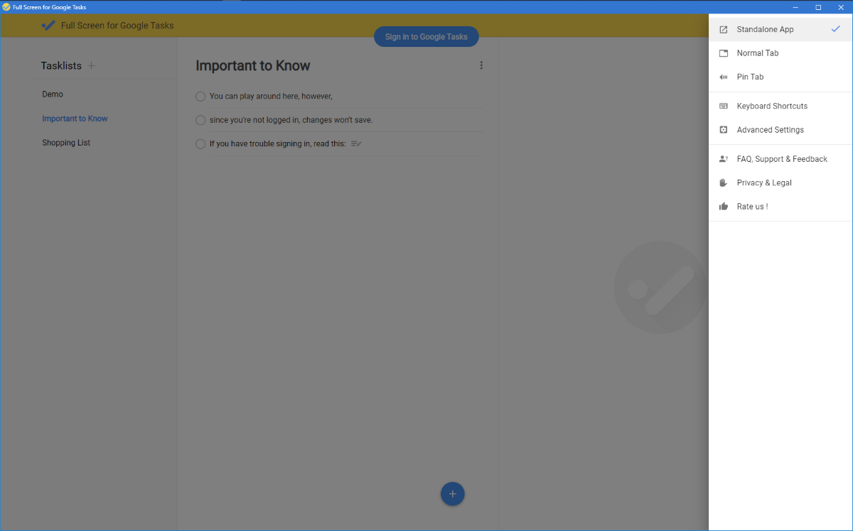 Full Screen for Google Tasks — поможет работать с Google Task в нормальном окне браузера вместо обычной панели в Google Календаре или почте.